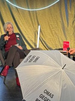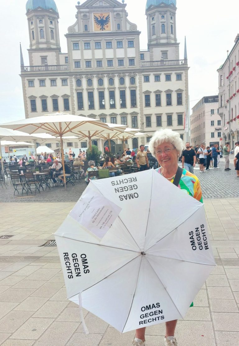 2023 hat mich der zunehmende Rechtsruck und sprachliche Verrohung in unserer Gesellschaft so unruhig gemacht, dass ich mich den OMAS GEGEN RECHTS anschloss, damals noch in München.